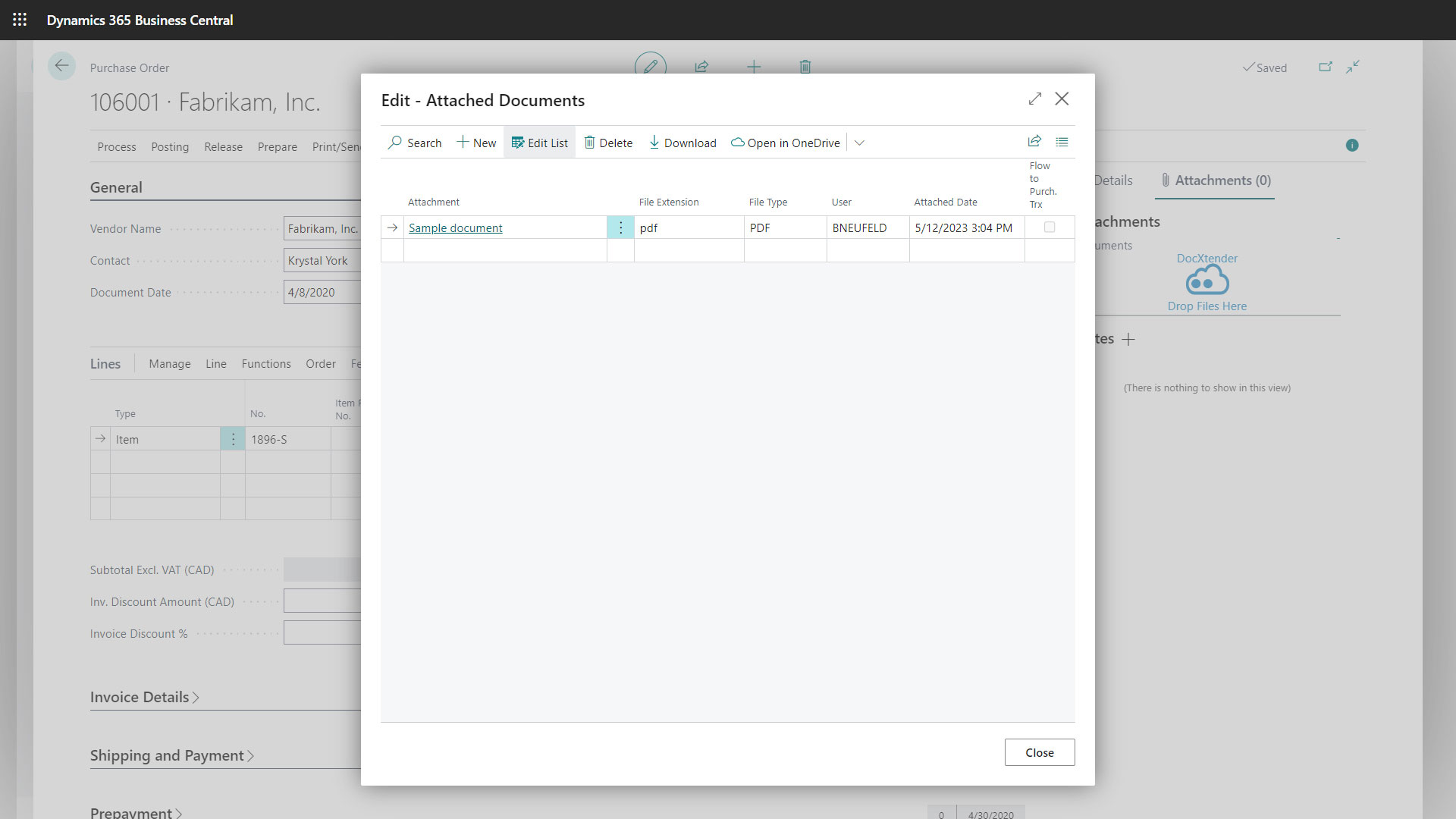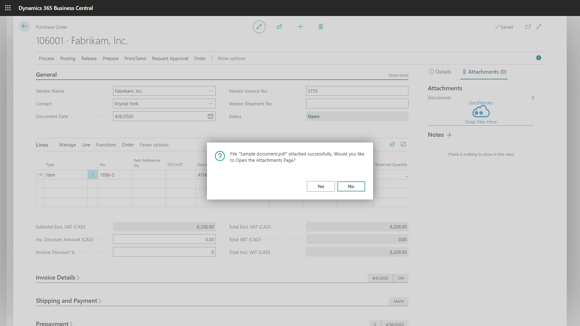 DocXtender for Microsoft Dynamics 365 Business Central enables users to attach various documents to any compatible Business Central page via an intuitive drag-and-drop feature.