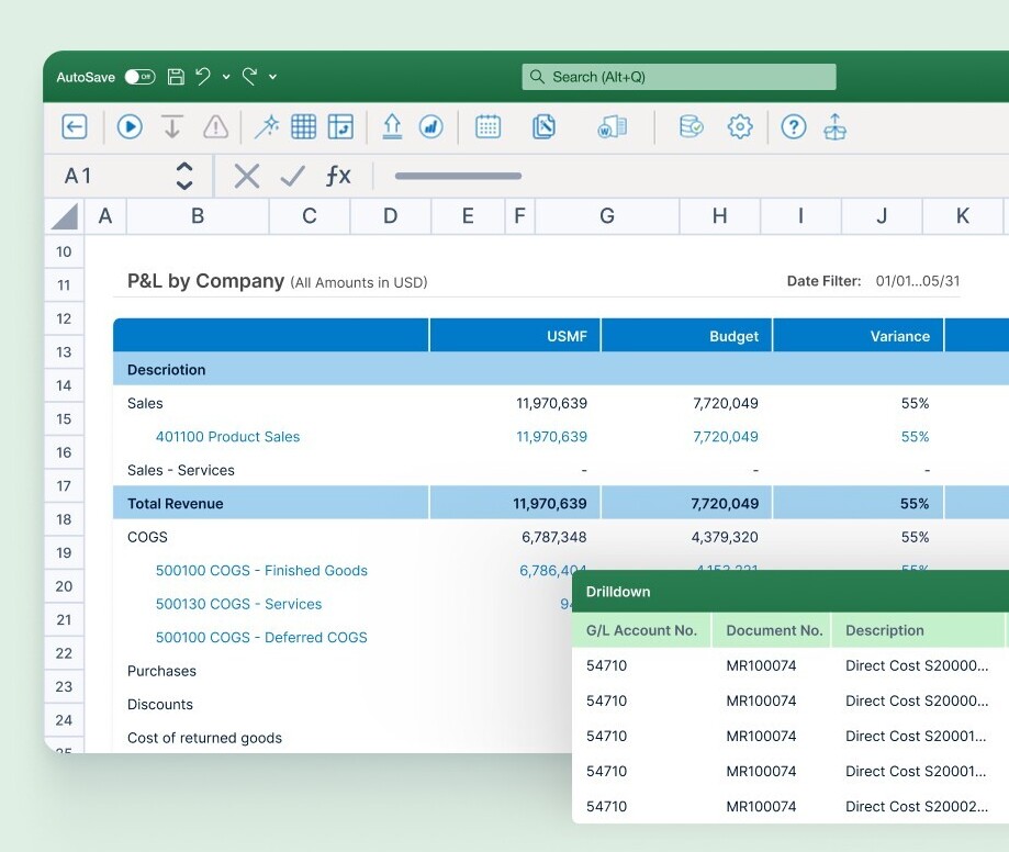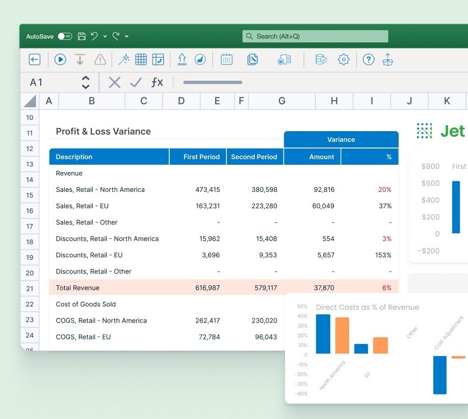 Jet Reports brings real-time financial data from Dynamics GP, NAV, or D365 Business Central directly into Excel—no IT required.