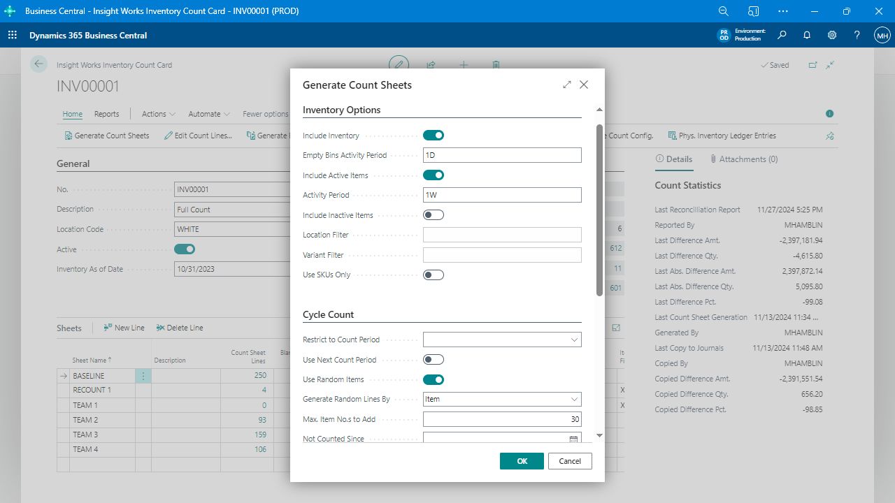 Flexible Count Sheet Generation: Tailored Inventory Solutions at Your Fingertips